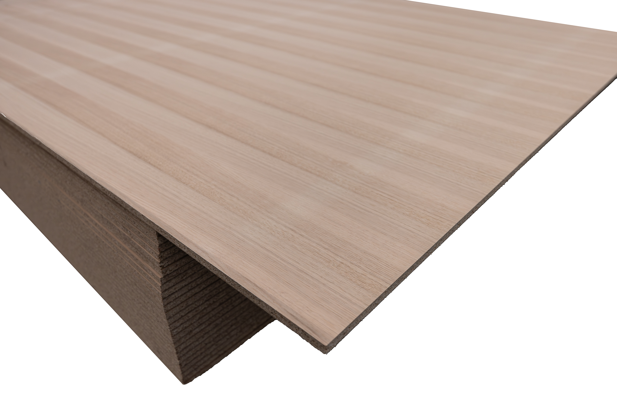 Panneaux agglomérés plaqués bois chêne EU A/B Fil - demi-fil, placage 0,6mm Provenance : FR-SK
