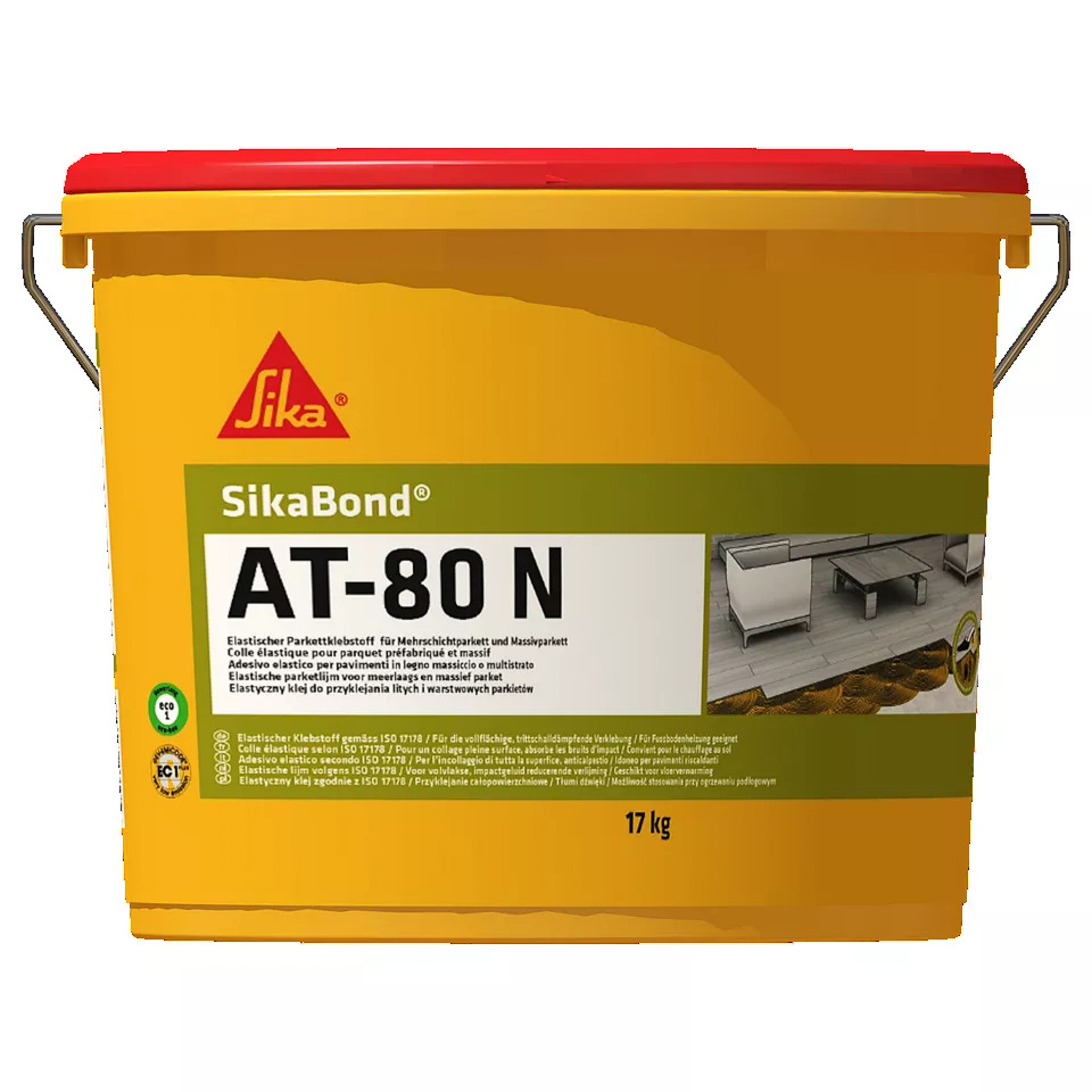Colle pour parquet SikaBond AT-80 N monocomposante Bidon de 17 kg, collage en pleine surface : 800-1300 g/m2