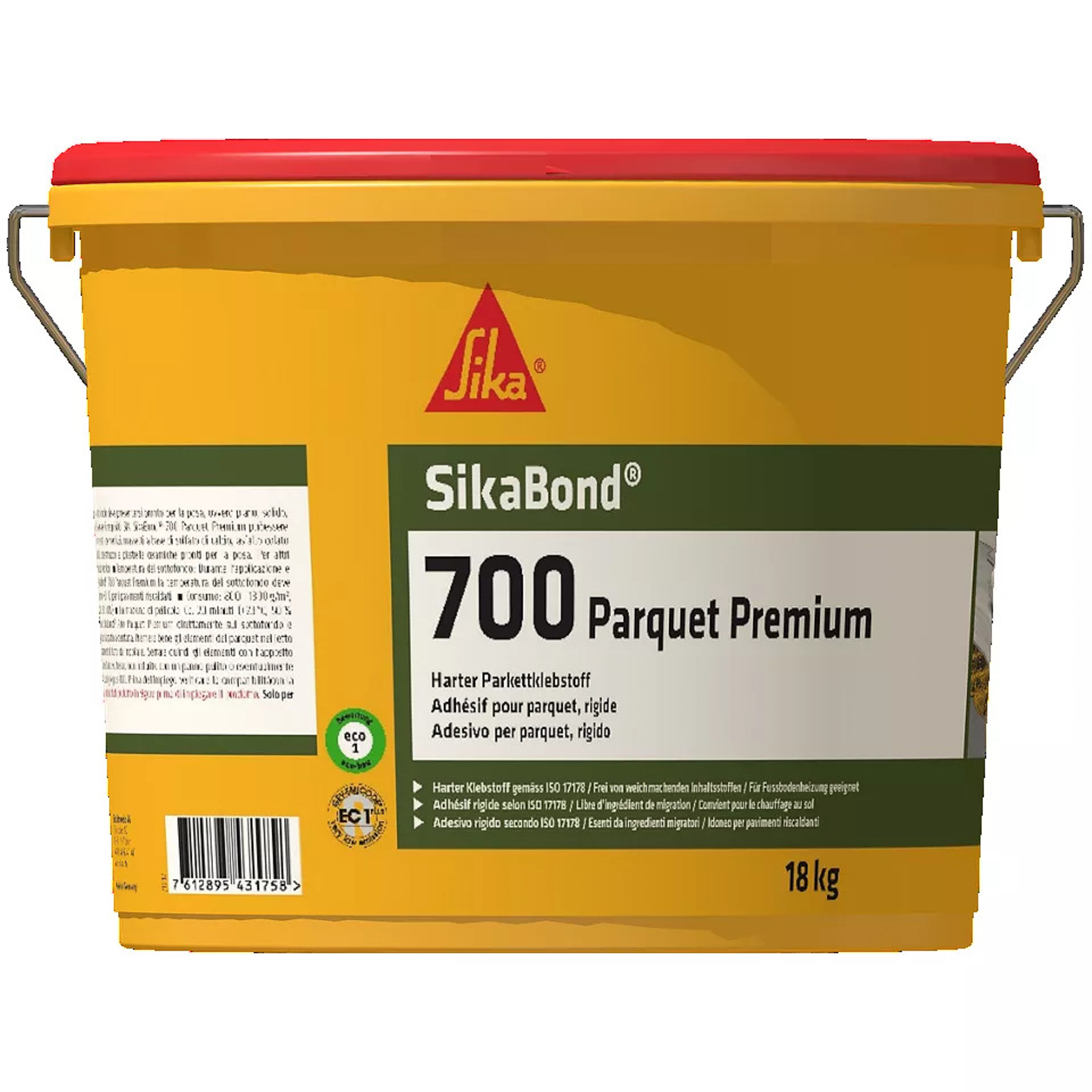 Colle pour parquet SikaBond 700 dès 190mm de large Bidon de 18 kg, collage en pleine surface : 800-1300 g/m2