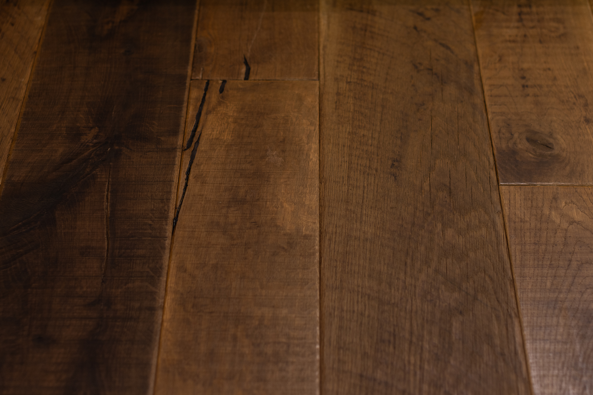 Parquet 83, chêne vieux bois sauv, rustique, (moy) Lame extra large, RC, 3 plis, huilé, mastic noir, raboté main